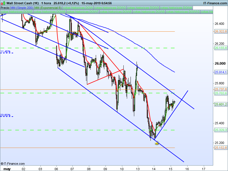 La reacción alcista nos sigue situando por debajo del SOR 25737, mantenemos predisposición bajista mientras se siga dando esta circunstancia con el objetivo puesto en 25152