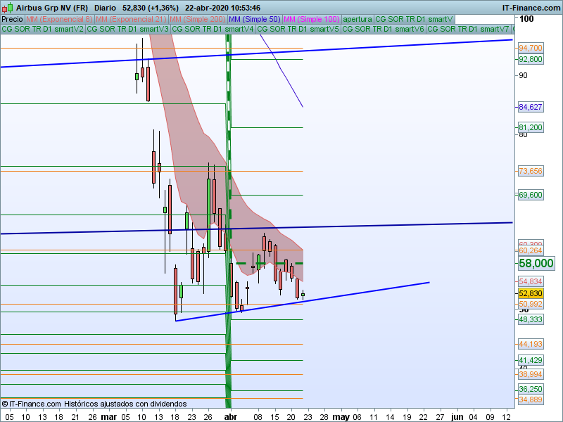 AIRBUS, sin ningún interés mientras estemos por debajo del PAT. Publicado por Julio Fdezel 22 abril, 2020Tenemos el precio de apertura trimestral en 58, es un valor que no interesa.Seguir leyendoArtículo anterior CAC40: Mapa operativo intradiario.Artículo siguiente TR sesión europea ya disponible.