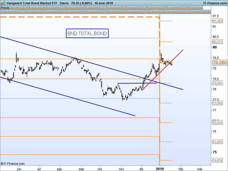 El ETF que recoge la renta fija de EEUU parece perder la LT alcista y el PAA. DE confirmarse tendríamos un objetivo bajista en el primer SOR 78.30, mantendremos este escenario mientras permanezcamos por debajo del PAA