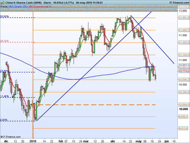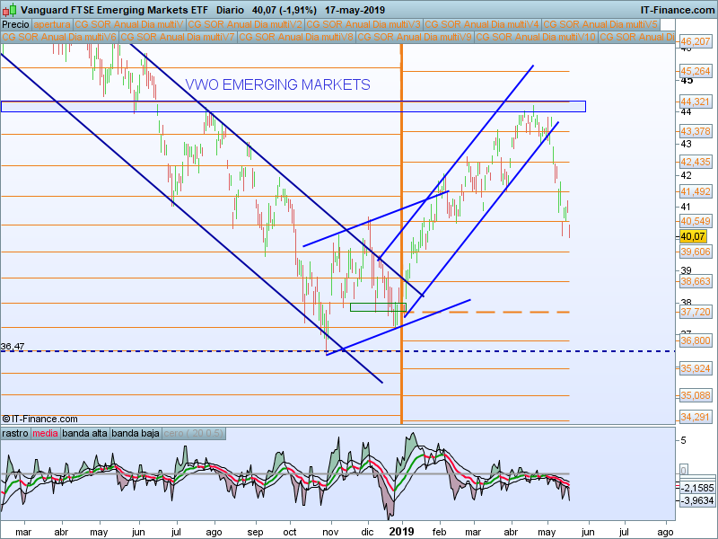 5.-Mercados emergentes.- La estructura que hemos venido trayendo durante los primeros meses del año ha sido correctiva, tras los máximos alcanzados en abril, parece que se sigue confirmando el escenario de ver un nuevo tramo bajista por debajo de los mínimos del pasado año.