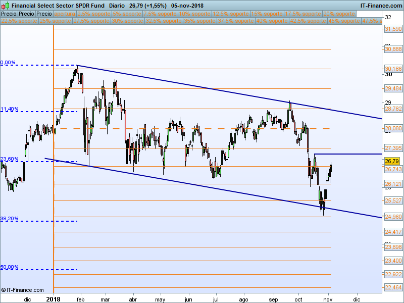 Financiero (XLF). Otro que no nos gusta para esta semana, seguimos con la secuencia max/min decrecientes intacta.