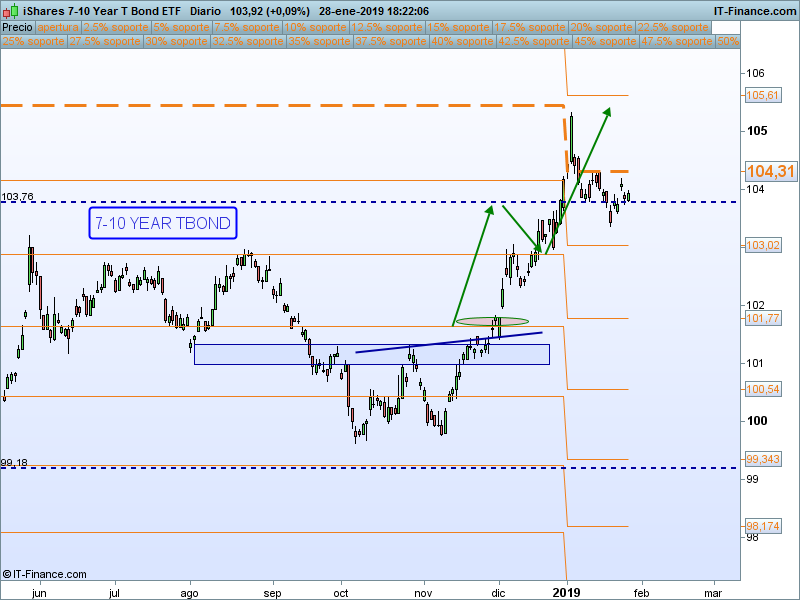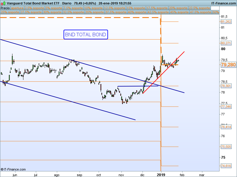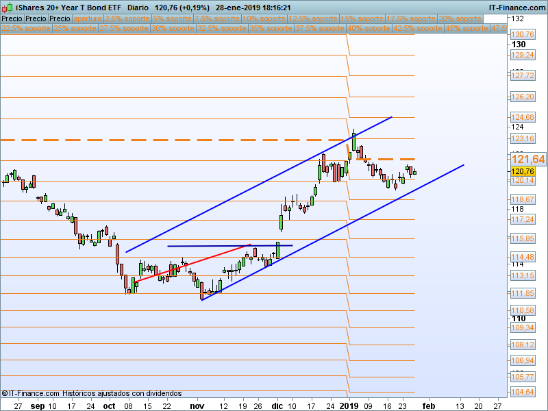 Al ser un mix, está teniendo mejor comportamiento que los bonos a largo plazo. El retroceso no nos ha llevado a perder el PAA, mientras sigamos por encima de este debemos seguir manteniendo predisposición alcista.