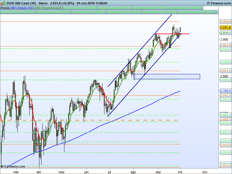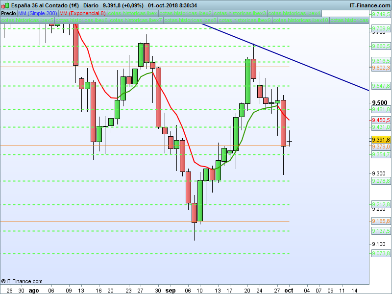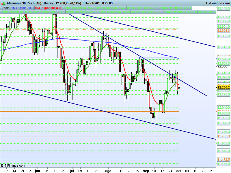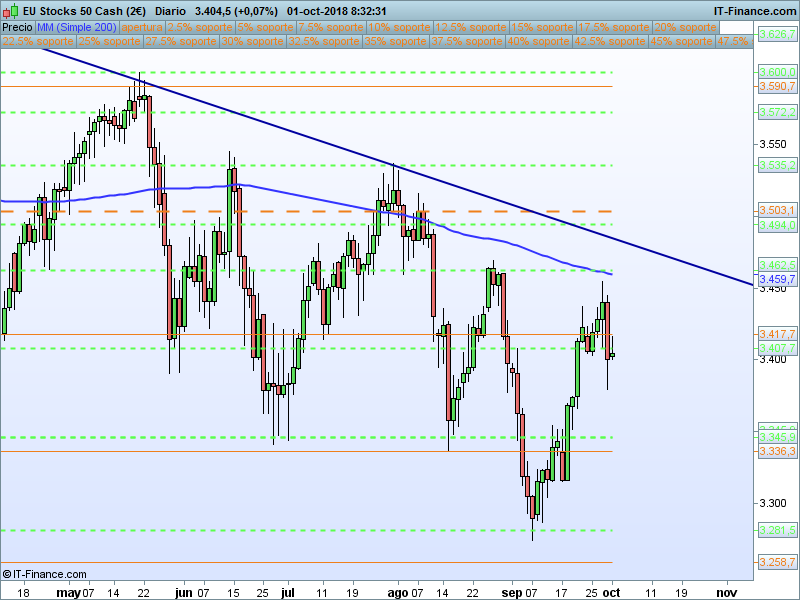 01/10/2018,08:20:45.-El pasado viernes tuvimos que sacar a media mañana un breve y rápido análisis de la situación europea dada la alta volatilidad provocada por Italia. EE.UU mantuvo el tipo y evitó males mayores en el cierre Europeo. Pero aún así la alegria, en Europa, va por barrios y encontramos algunos índices que quedan dañados. Ademá, hay que tener el cuenta el hecho de que el viernes fue final de mes y de trimestre. Por muchas ganas que tengamos de ver por fín una reacción alcista en Europa, tenemos que ser conscientes de que en ninguno de los índices importantes hemos roto la secuencia de máximos decrecientes… de momento…