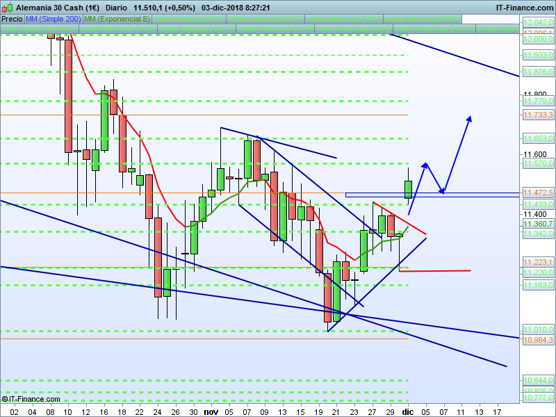 DAX Xetra,08:25:57.- La vela del viernes nos dio todas las pistas necesarias. Mientras permanezcamos por encima de 11472, el objetivo debe ser la zona 11653-11733