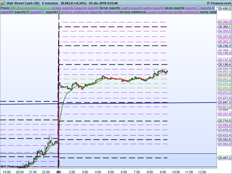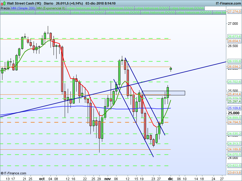 DOW JONES,08:13:47.- Abrimos con GAP y nos vamos directamente al SOR 26034, primer objetivo de la subida. Tendremos que ver el cierre del precio en esta zona para ver si cerramos por encima o por debajo.