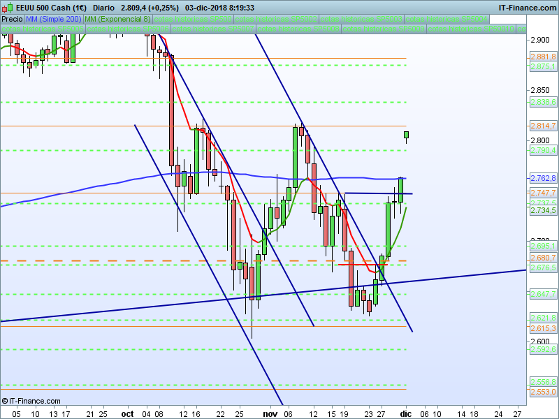 2018-11-30 APERTURA GLOBAL. 07:53:32.- Otro golpe de efecto de TRUMP a los mercados. Que el presidente de EE.UU manipula no es nada nuevo, en una semana ha vuelto a poner patas arriba el escenario económico mundial. Si hace unos días consiguió una bajada de pantalones de Powell que nadie esperaba, este fin de semana desde el G20 recula con la guerra comercial. Esto provoca que hoy abramos todos los mercados con importantes GAPs alcistas que, oh sorpresa, nos llevan a los siguientes SORs anuales. Y todavía recibimos mails preguntándonos si estas cotas calculadas sirven para algo… en fin.