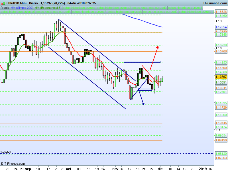 2018-12-04 APERTURA GLOBAL. 08:06:38.- La semana dio comienzo con un tirón alcista importante, dejando un fuerte GAP de apertura que debe ser cerrado. Las cotizaciones llegaron a los SORs señalados y se giraron en corrección. Vigilaremos que se respeten los soportes clave y podría ser buen momento para incorporarnos.