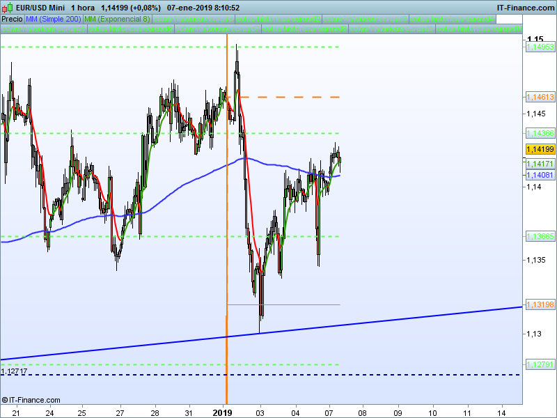 EURUSD,08:09:31.- Seguimos dentro de la zona lateral, donde el recorrido probable para hoy será buscar de nuevo el PAA2019, cosa que buscaremos mientras permanezcamos por encima del eje central marcado por el refugio 1.1366