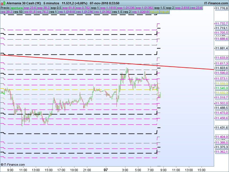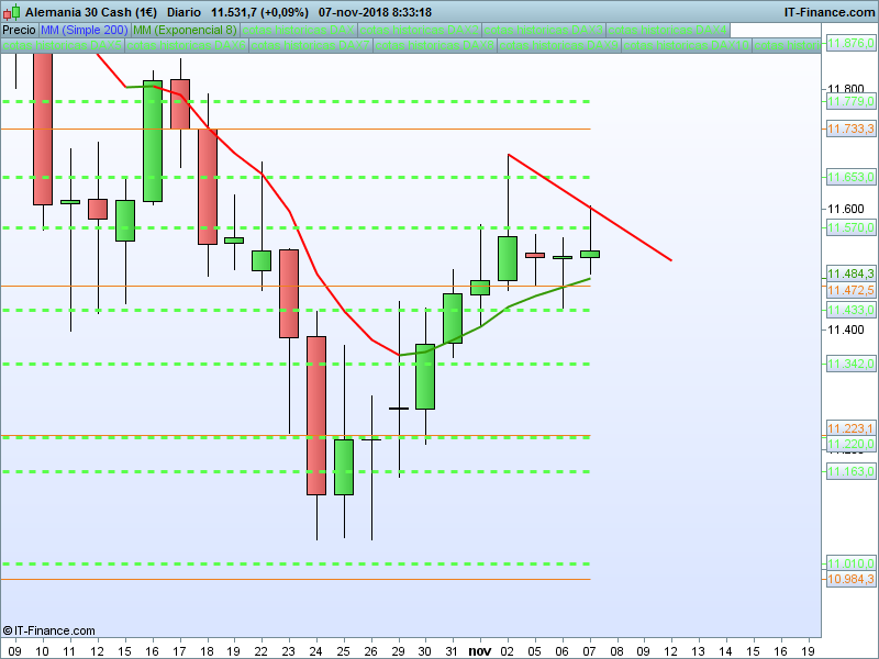DAX Xetra,08:30:51- De nuevo otra vela de indecisión tomando apoyo en el SOR 11472. Vamos a esperar cual es la reacción de Europa al resultado electoral. Cierres por debajo de esta cota nos predisponen a buscar el doble soporte 11223. mientras permanezcamos por encima de 11472 la predisposición es ir a buscar la cota 11733.