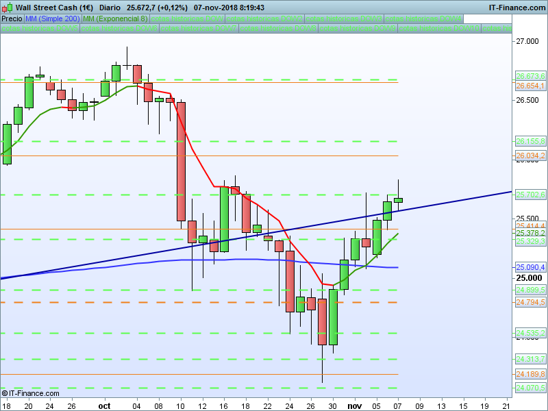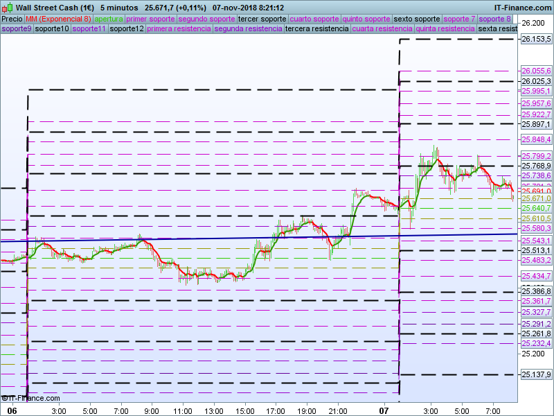 DOW JONES,08:18:19.- Toque al refugio 25702 y cierre cerca de máximos. En estos momentos estamos en ese punto. Nuestra predisposición será ir a buscar los 26034 mientras no tengamos cierre por debajo de 25414. Si hubiésemos operado durante la noche, podríamos haber tenido la oportunidad de coger un claro patrón 1-3.