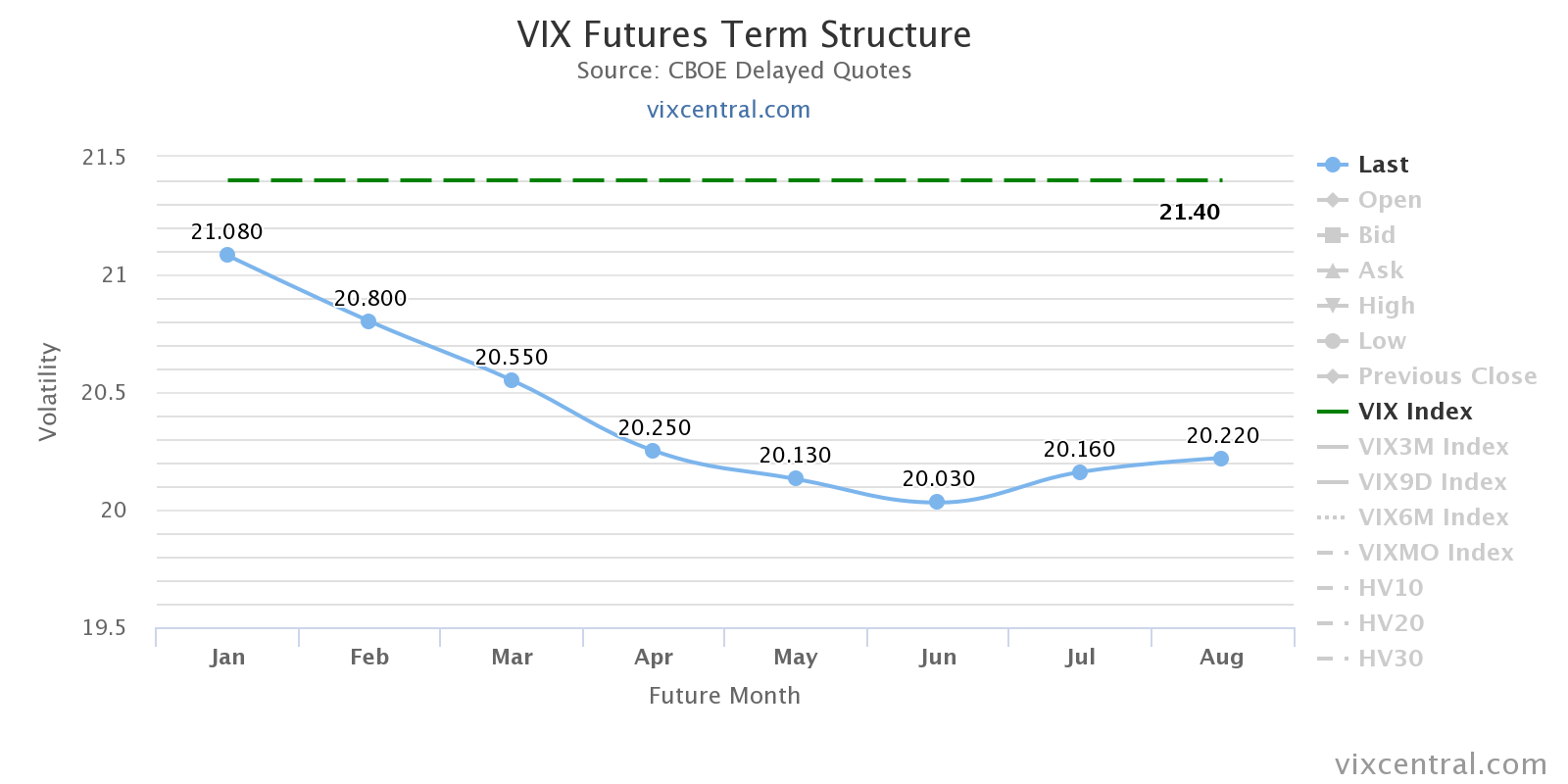 Este descenso comentado de la volatilidad es relativo ya que el VIX sigue cerrando por encima de 20 y manteniendo su curva de futuros con pendiente negativa. No nos quedaremos tranquilos hasta ver este indicador por debajo de 16 durante un par de días consecutivos.