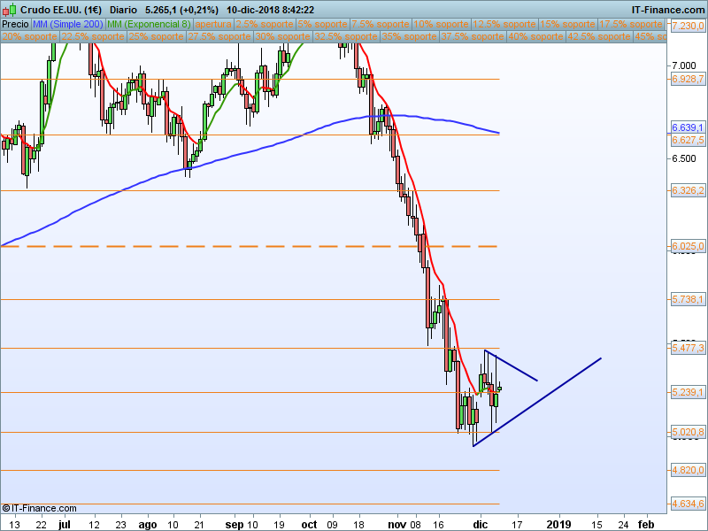 WTI,08:39:43- Mechas por arriba y mechas por abajo, es lo que toca con las correciones. Hemos delimitado zona triangular cuya rotura debe darnos predisposición operativa. Debemos ser conscientes de la tendencia de fondo, dónde está el precio y qué está haciendo.