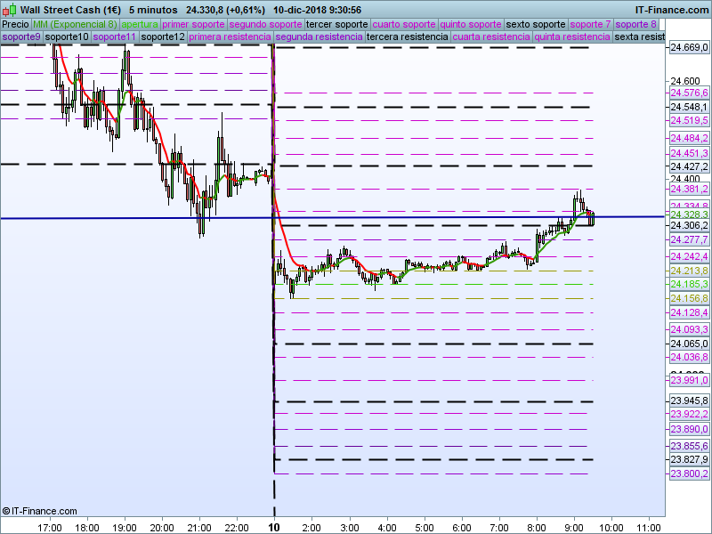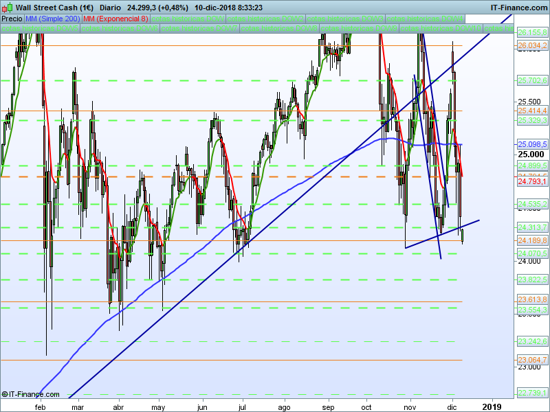 DOW JONES,08:31:11.- Apertura de la semana bajista justo en el SOR anual 24189. La pérdida de este nivel nos deja la puerta abierta al SOR anual 23613, que fue el que contuvo al precio en las caídas de principios de año.
