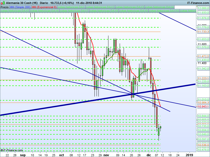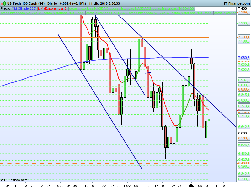2018-12-11 APERTURA GLOBAL.08:06:18.- Otra sesión de turbulencias en la sesión americana. Tras una apertura oficial con fuertes bajadas, a media sesión los índices se dieron la vuelta y terminaron en positivo cerrando muy cerca de los máximos diarios. El apoyo estuvo en el sector tecnológico, donde Microsoft y Facebook particularmente tiraron con fuerza. También contribuyó el giro al alza de Apple cerrando en positivo tras abrir con bajadas del 2%. Adelantamos a nuestros lectores que esta tarde analizaremos en profundidad Apple en nuestro espacio dedicado a las peticiones de nuestros suscriptores en nuestro canal de Youtube.