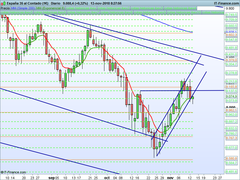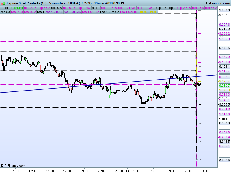 IBEX35,08:27:05. – No se ha podido con el SOR 9165 el precio ha sido rechazado hasta el refugio histórico 9073. El objetivo a corto mientras permanezcamos por debajo de 9165 será el retesteo del SOR 8962.