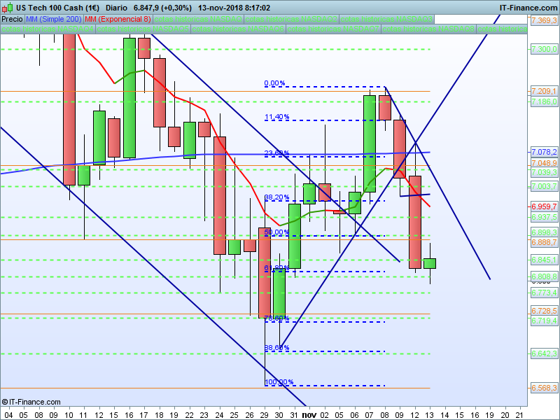 NASDAQ100,08:14:11.- Al igual que en el caso del SP500, nuestra previsión se quedó corta, con lo que mostramos una mayor debilidad. Cierre claro por debajo de 6888 y recorrido abierto al SOR 6728. La subida nos indica pauta correctiva y no impulsiva. EL SOR 6728 pasa a ser muy relevante ya que nos abre o cierra la puerta a nuevos mínimos.