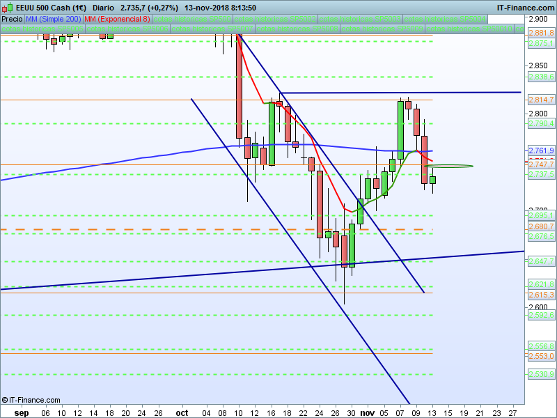 SP500,08:11:37.- Nos quedamos cortos en la previsión de ayer señalando el SOR 2747 como objetivo. La media de 200 sesiones fue perforada con fuerza. Mientras permanezcamos por debajo de este SOR, tendremos que predisponernos a volver al PAA.