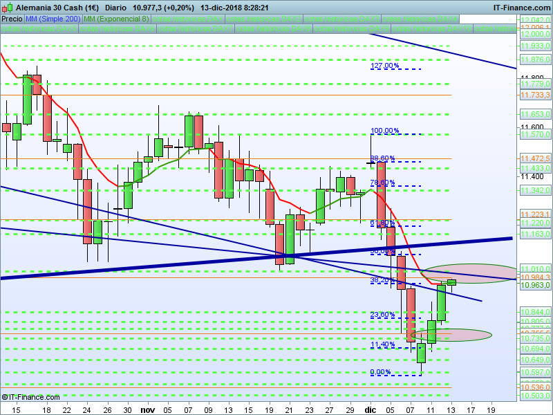 DAX Xetra,08:26:32.- A punto de llegar al SOR 10984, veremos si tenemos reacción en ese punto que puede ser importante junto con la extensión del refugio 11010.