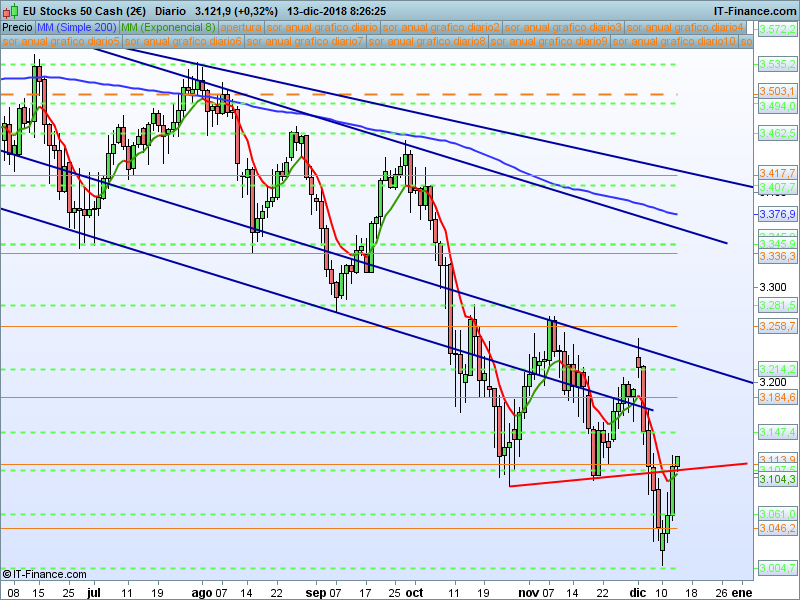 STOXX50,08:30:45.- Vamos adelantados y ya hemos alcanzado la cota 3113 del SOR anual, incluso en estos momentos cotizamos por encima, si se confirma con un cierre puede ser una confirmación alcista.