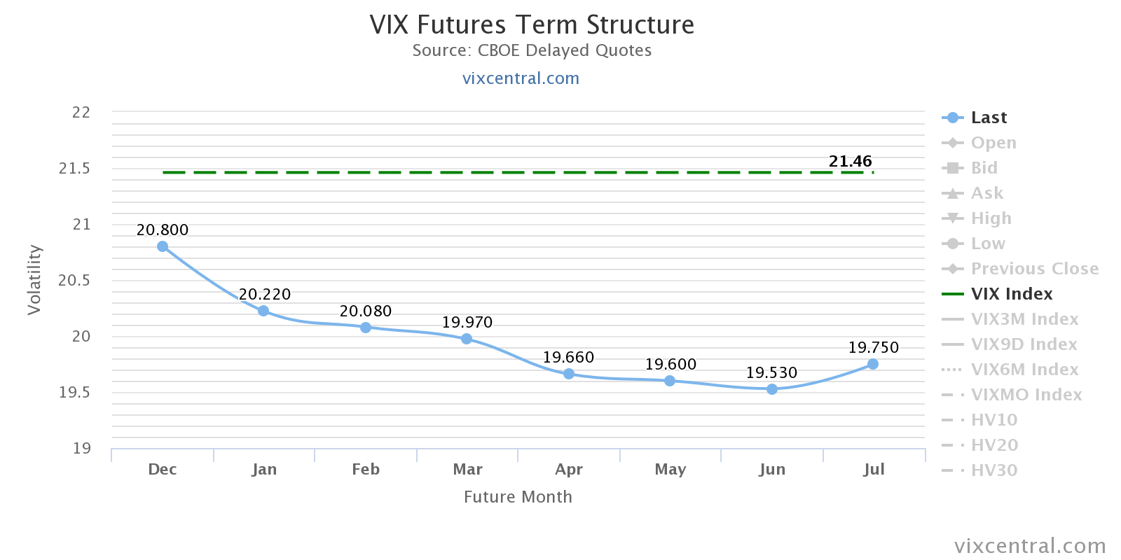 El VIX también repitió lectura de la jornada anterior y nos estamos acostumbrando a verlo por encima de 20, las lecturas extremas no llegan.