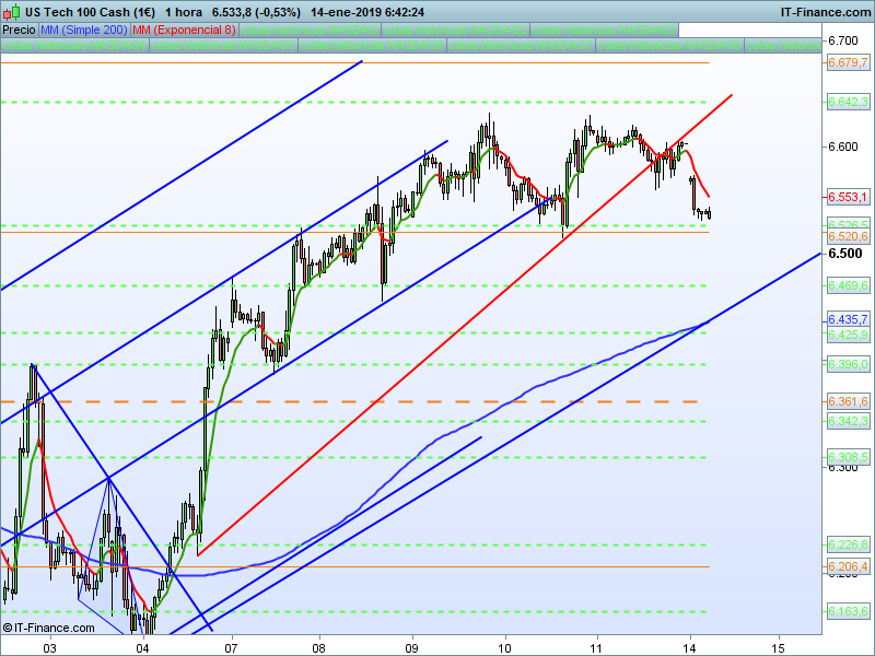 NASDAQ100,06:40:11.- La mayor fortaleza provoca que aún estemos por encima del SOR anual 6520. Este será el nivel en donde vamos a jugar. Cierres por abajo nos confirmaran el movimiento bajista.