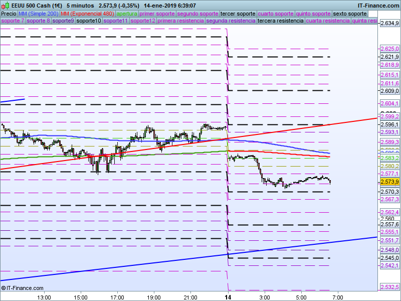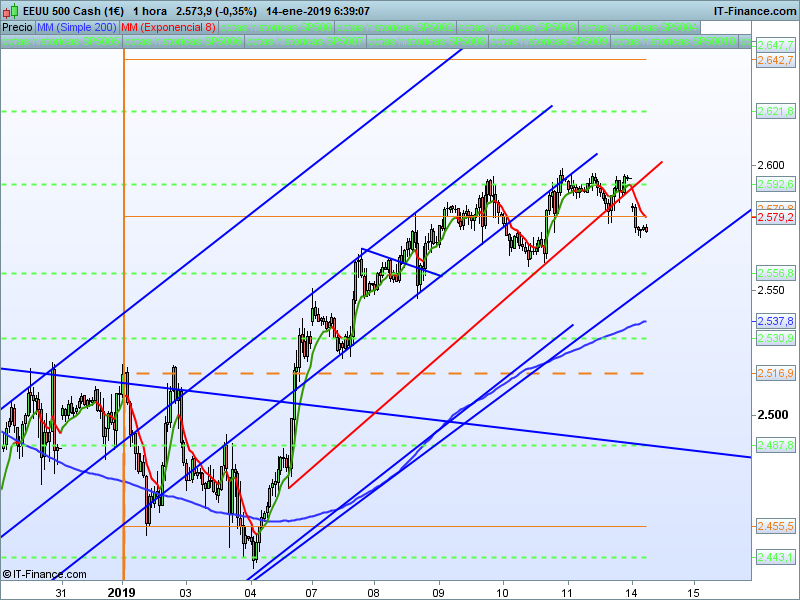 SP500,06:37:11- Estamos navegando por debajo del SOR 2579 en el momento en el que escribimos este análisis. Mientras esto continúe la predisposición será ir a buscar la parte baja del canal como primer objetivo, si una vez alcanzado no vemos reacción alcista, la segunda parte del recorrido puede abrir la puerta al PAA en 2516.