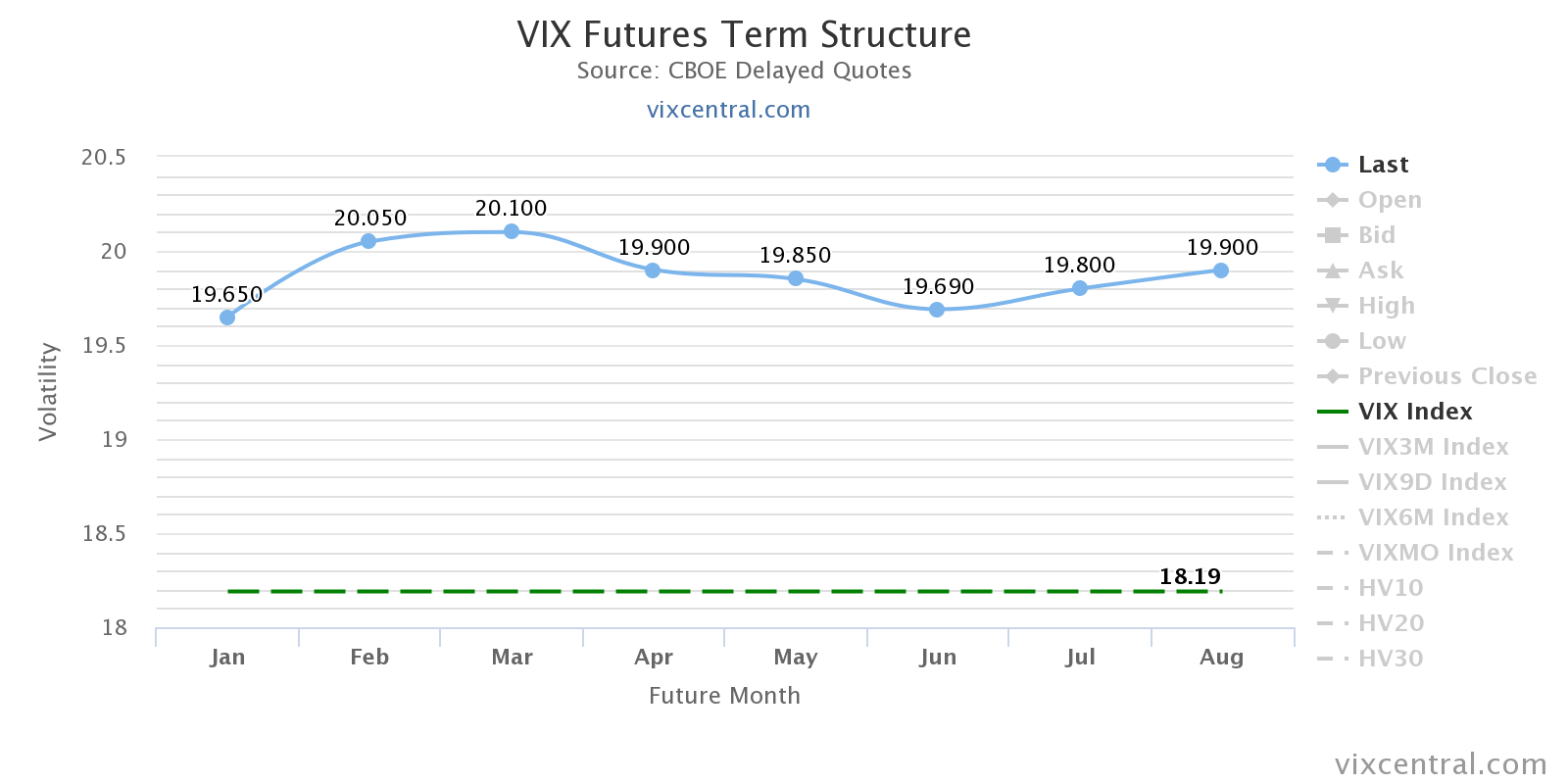 Todo esto cuando teníamos ya al vix cerrando claramente por debajo de 20 y dirigiéndose a la «zona de confort» de 16 con la curva de futuros aplanándose.