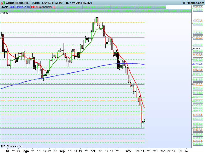 WTI, 08:31:18.-Ayer experimentó una ligera corrección que le llevó al SOR 5738, allí se giró cerrando lejos de máximos. Antes de incorporarnos debemos ver una corrección mayor. Pensamos en el PAA.