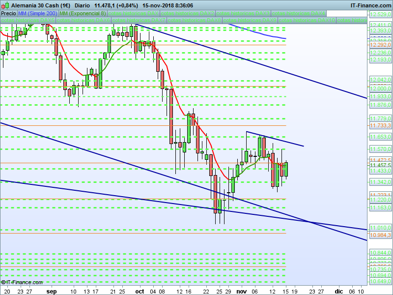 DAX Xetra,08:35:05.- Otra vez pegados al 11472. Esta zona es muy relevante, ya que fue PAA de 2017. Toca esperar confirmaciones.
