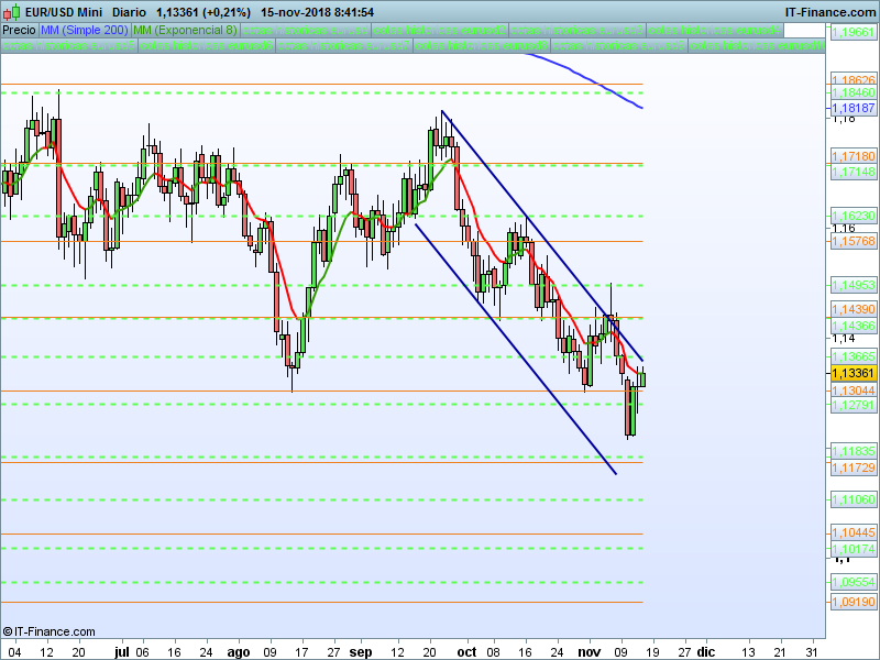 EURUSD,08:40:41.- Vela de indecisión justo en el SOR 1.13044. Vamos a vigilar la parte superior del canal bajista de corto plazo para validar la continuidad bajista.