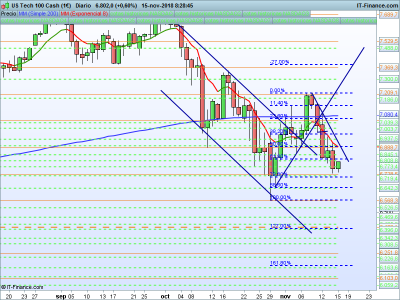 NASDAQ100,08:27:13.- Nos quedamos a escasos puntos del SOR 6728. Si perdemos esta cota se abren las puertas a nuevos mínimos.