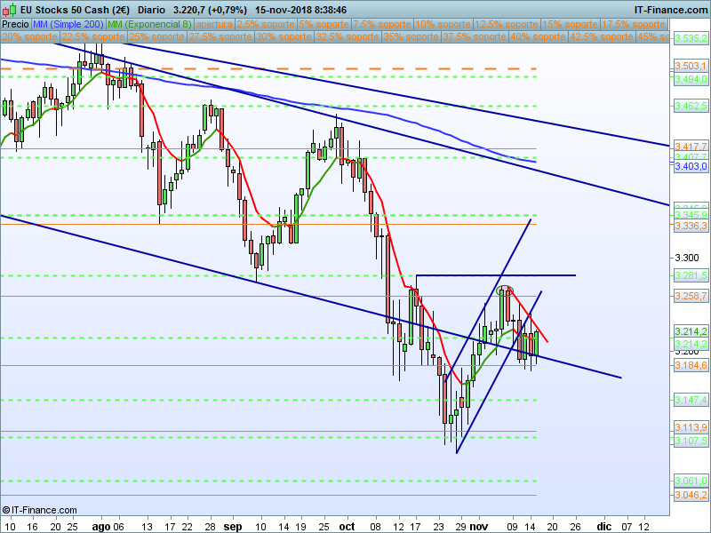 STOXX50,08:38:06.- El SOR 3184 nos cerró el paso de nuevo y estamos teniendo reacción alcista en la sesión asiática. Cierres por debajo nos llevan a buscar los mínimos. Cierres por encima de la 0B nos predisponen a buscar el SOR 3258 con extensión al 3336