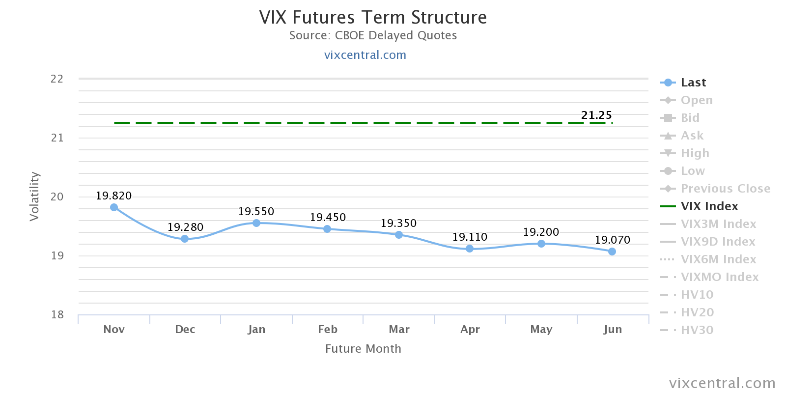 APERTURA GLOBAL. 08:14:39.- Continuamos con bajadas moderadas en Wallstreet siguiendo el guión establecido por lo que no hay mucho que comentar. Estamos en zona muy conflictiva al concurrir 2 recuentos posibles y opuestos. Las manos fuertes siguen estando fuera y el VIX cerró por encima del nivel anterior, su curva de futuros sigue estando invertida. Hoy seguimos sin nuestro indicador de SORs intradiarios.