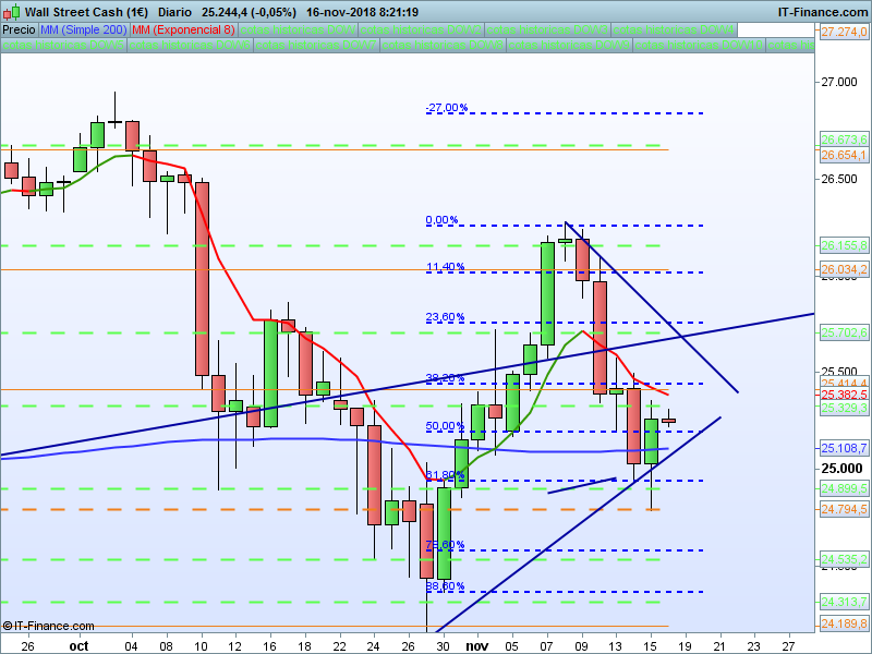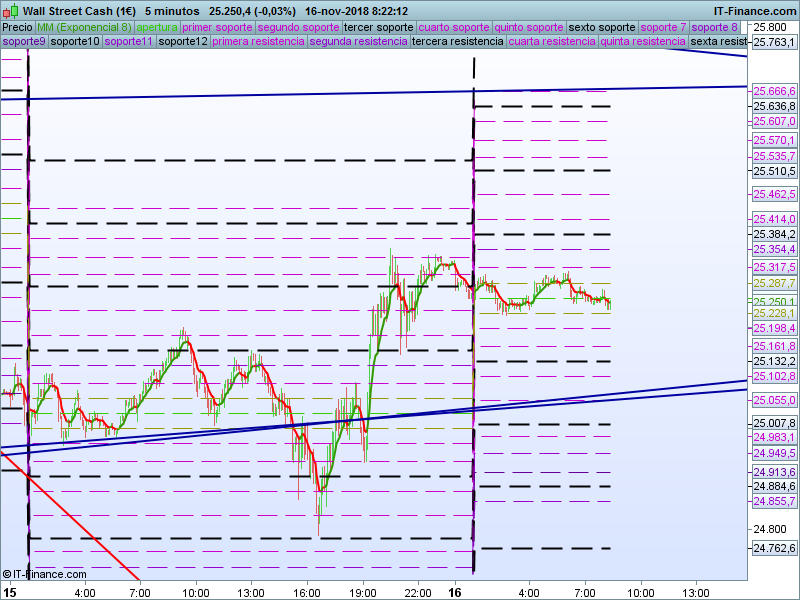 DOW JONES,08:19:32.- Movimiento quirúrgico para ir a buscar el PAA que se nos quedó ayer abierto. En esa zona tuvo un rechazo muy fuerte que nos llevó a las cercanias del SOR 25414. Cierres por encima nos predisponen a buscar el tramo largo. El nivel que no debemos perder es el PAA.