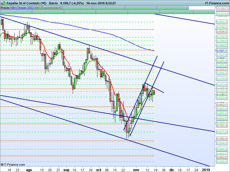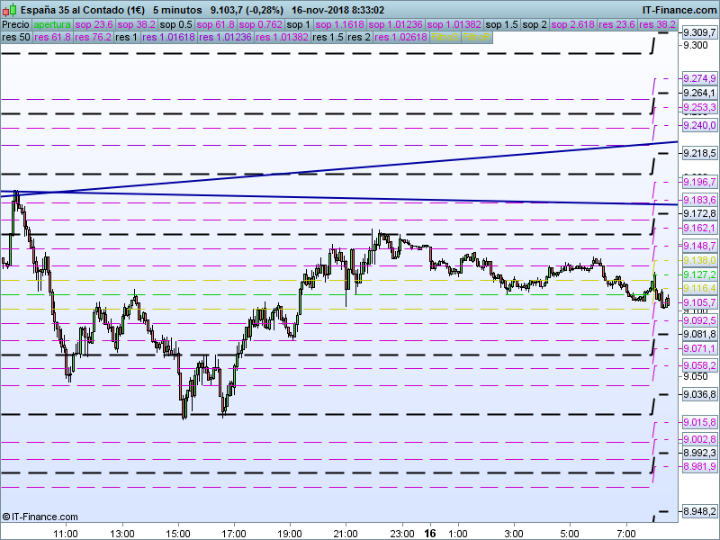 IBEX35,08:31:52. – Otro día más seguimos pegados al SOR 9165, tanto va el cántaro a la fuente que al final termina llegando al 9379. Atentos a cierres por encima del 9165.