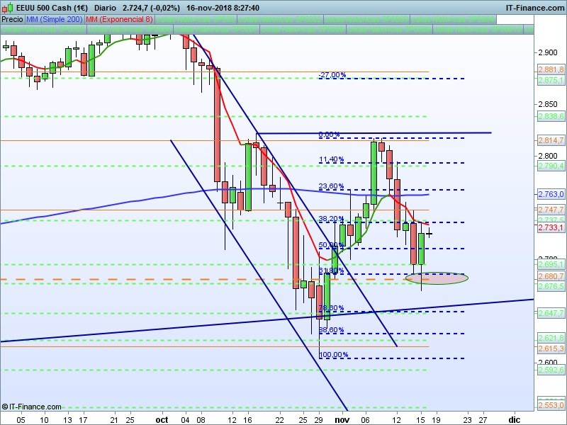 APERTURA GLOBAL. 08:14:15.- Momento clave a corto plazo. El SP500 rebotó en zona importante y podríamos tener continuidad en el rebote a corto plazo en una sesión en la que los índices EE.UU terminaron cerrando en máximos. Hoy tenemos declaraciones de Draghi a primera hora, junto con los datos de IPC de Octubre de la zona Euro, veremos cómo afecta la caida del petróleo a este dato.