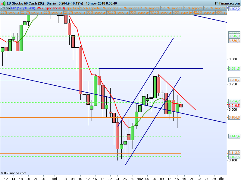 STOXX50,08:30:17.- Seguimos en la zona de lateralización que tenemos marcada. Ojo al movimiento alcista de EE.UU que podría dar impulso a Europa. Pendientes de la 0B.