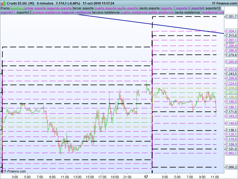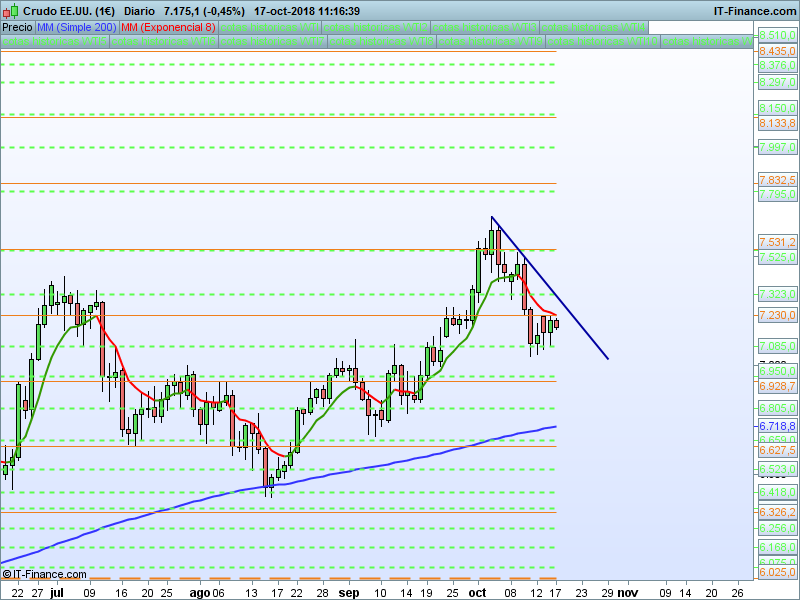 Crudo Ligero WTI, 11:10:00.- Por quinto día consecutivo estamos lateralizando entre el SOR anual 72.30 y el refugio 70.86. El nivel importante a recuperar sería el refugio 73.23, que fue máximo anual en el mes de julio. Por abajo, en caso de perder el 70.86 tenemos doble soporte en 69.28 con extensión a 68