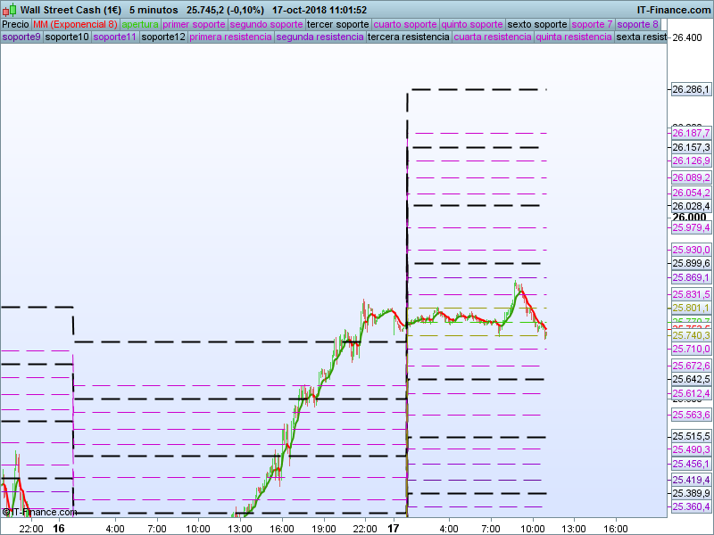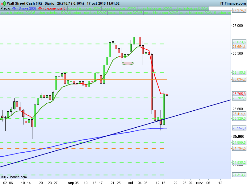 DOW JONES, 10:59:02.- Se cerró sobre el refugio histórico 25702. Si lo mantenemos, el siguiente objetivo deberia ser el SOR anual 26034. En caso de perder el 25702, el recorrido más probable sería la vuelta al SOR 25414.