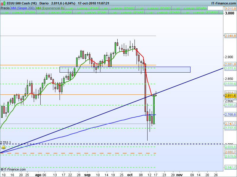SP500, 11:05:04.- De SOR a SOR!!! En días como los de ayer uno se da cuenta de lo bien que funcionan estos niveles calculados a la hora de seguir a las manos fuertes. Toque al SOR anual 2814 y cierre por abajo. Mientras no lo supere vamos a considerar que se gire a buscar el refugio 2790. Por encima del SOR anual tenemos el refugio 2838. Ese será nuestro rango objetivo de negociación para el día de hoy.