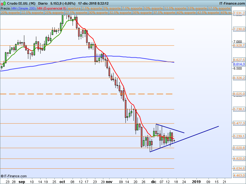 WTI,08:30:59. Los Triángulos son horribles de trabajar, vela del viernes que niega la anterior para seguir dentro de la zona delimitada. Hay que esperar roturas para posicionarse.