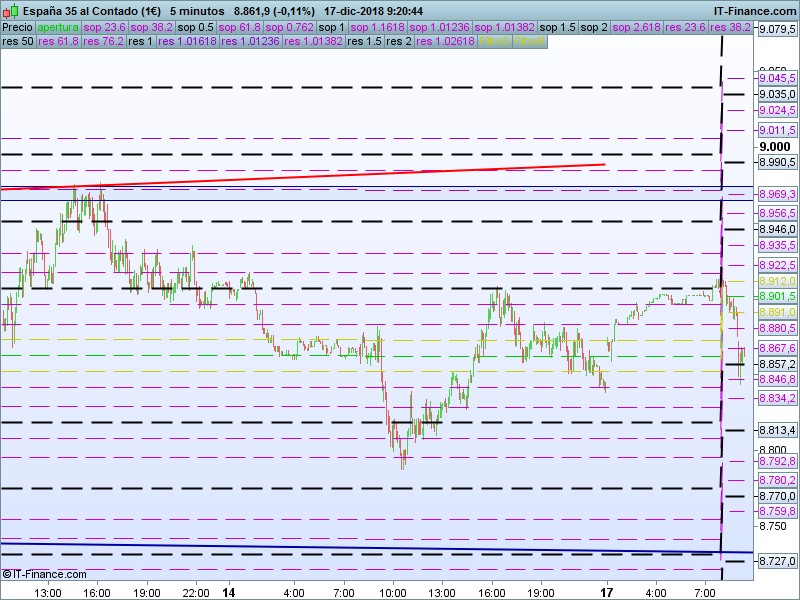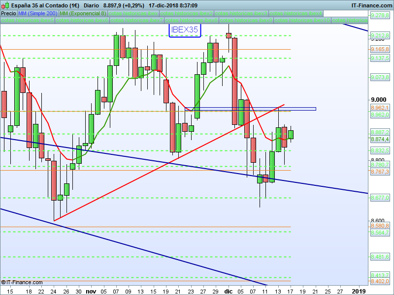 IBEX35,08:35:55. – No llegamos al SOR 8767 lo que indica menor debilidad. El nivel a recuperar es el 8962 para poder pensar en un escenario alcista a corto plazo.