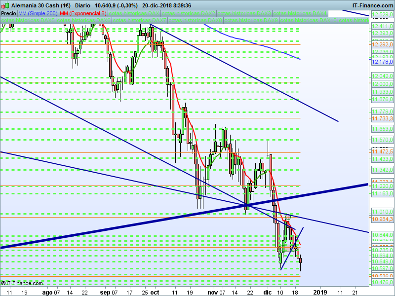 DAX Xetra,08:37:55.- Nuevos mínimos anuales tras no poder recuperar el SOR 10755, la puerta hasta el SOR 10536 está abierta de par en par y el punto de reversión sigue siendo el SOR 10984.