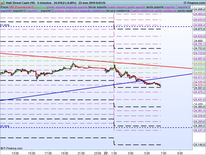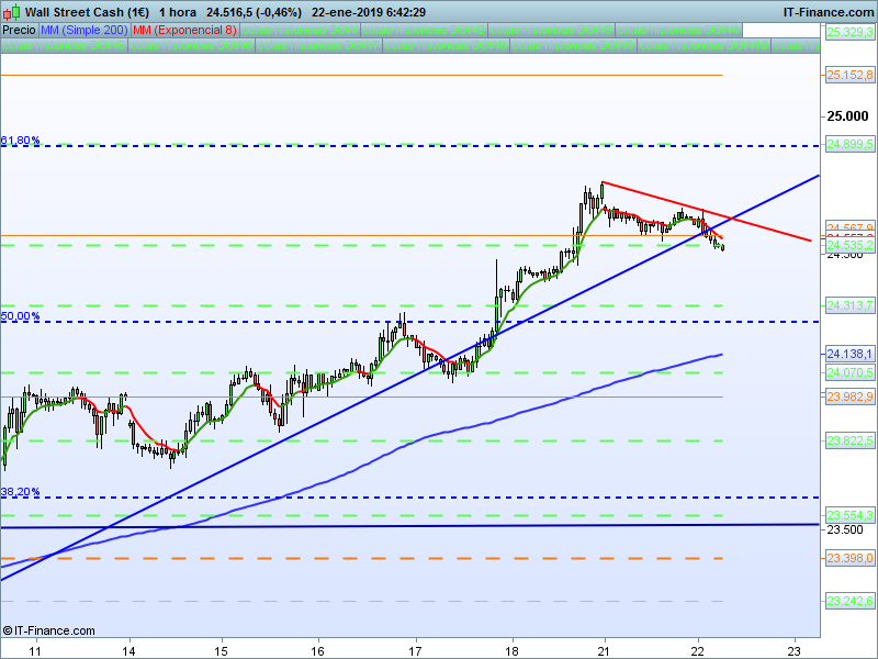 La festividad de Luther King en EE.UU nos ha llevado a iniciar una breve corrección dentro del tramo ¿final? de subida que tenemos planteado, donde quizás el caso que tengamos que vigilar con mayor atención sea el Dow Jones al perder de forma momentánea su SOR de referencia. Hay que decir que, aunque estos movimientos son totalmente válidos, se realizan con muy poco volumen de negociación por los motivos comentados, así que tendremos que esperar a la «hora del volumen» para que los movimientos tengan una mayor credibilidad.