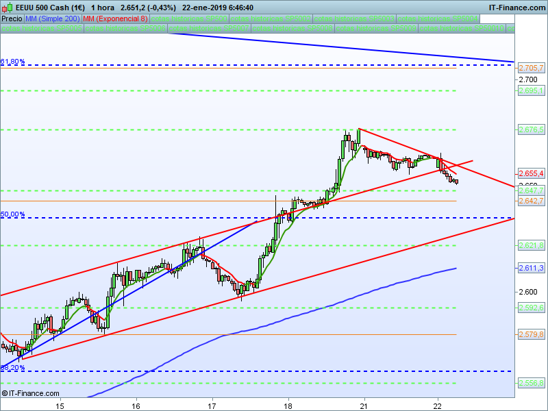 Pese al retroceso seguimos por encima del SOR 2642, mientras estemos en esta situación mantendremos predisposición alcista. En caso de perder el nivel, nos fijaremos un primer objetivo bajista a muy corto plazo en el refugio 2621