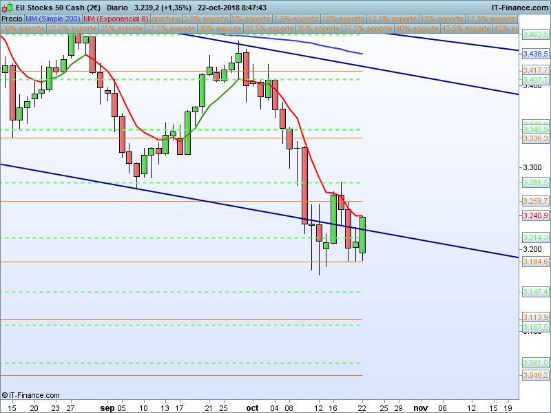 Europa 08:35:45- Día en la que se prevé apertura alcista tras la anulación del rebote la pasada semana. Los soportes volvieron a contener la cotización y las bolsas europeas parecen dibujar una corrección en ABC. Para hoy no tenemos publicación de datos macro de consideración.