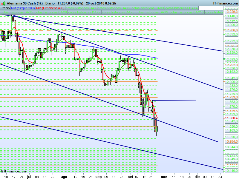 DAX Xetra, 08:53:17.- Retroceso hasta la base del canal perforado el miércoles y vuelta al SOR 11233. mientras permanezca por debajo del SOR 11733 vamos a seguir considerando que el impulso bajista no ha terminado