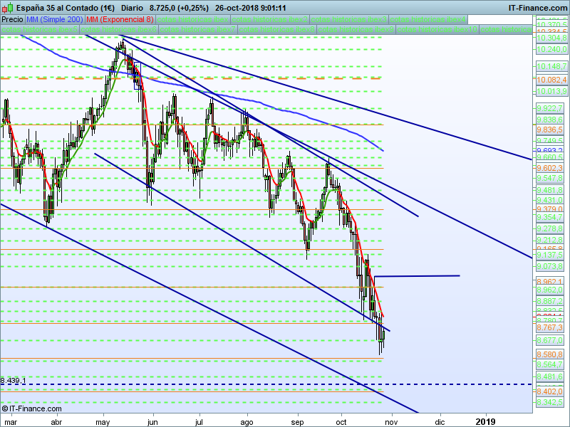 IBEX35, 08:59:57. Muy similar, retesteo a la base del canal. Posiblemente se despliegue un movimiento lateral. Mientras no tengamos un cierre claro por encima del SOR 8962, la predisposición a corto plazo seguirá siendo bajista.