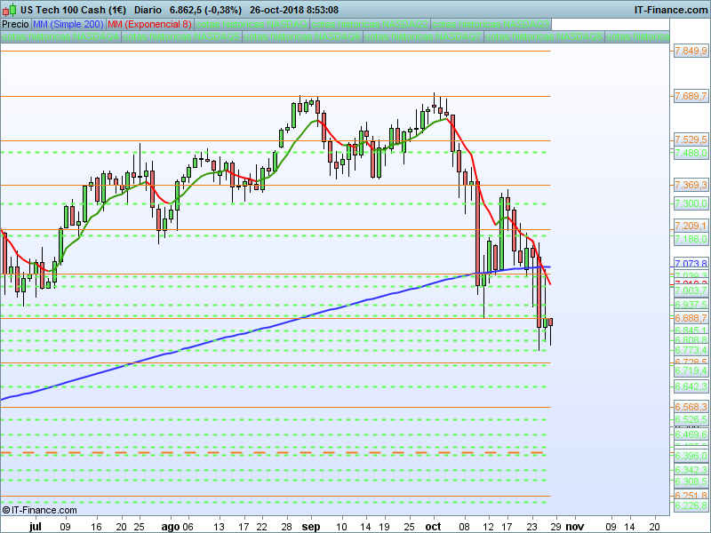 NASDAQ100, 08:52:09.- subida con ganas hasta la media de 200, estacazo para abajo y vuelta a la zona de cierre del miércoles.