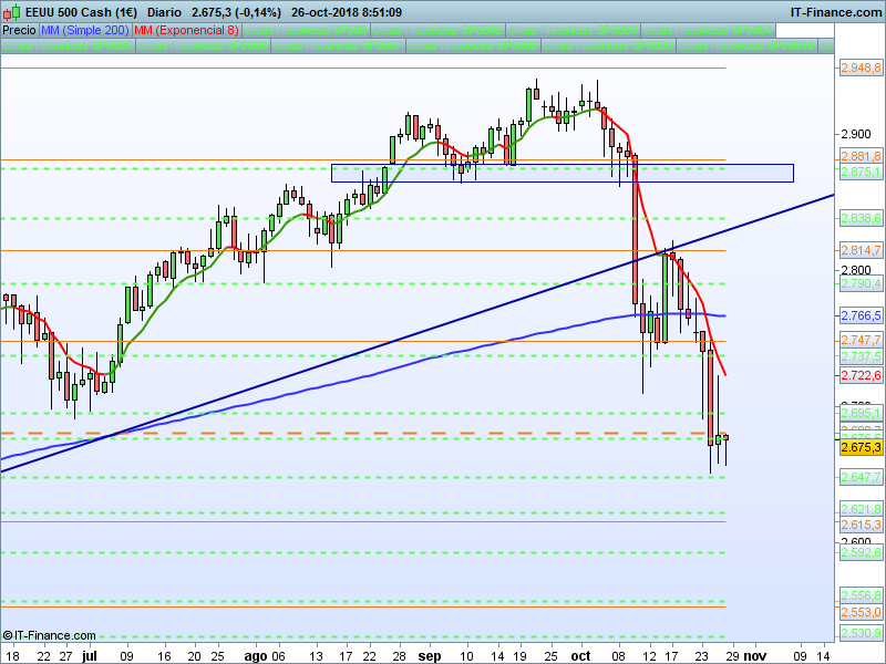 SP500,08:49:38.- Al igual que el resto de índices, tras una sesión oficial muy prometedora, se vino a bajo a mercado cerrado. También nos encontramos en estos momentos pegados al PAA.